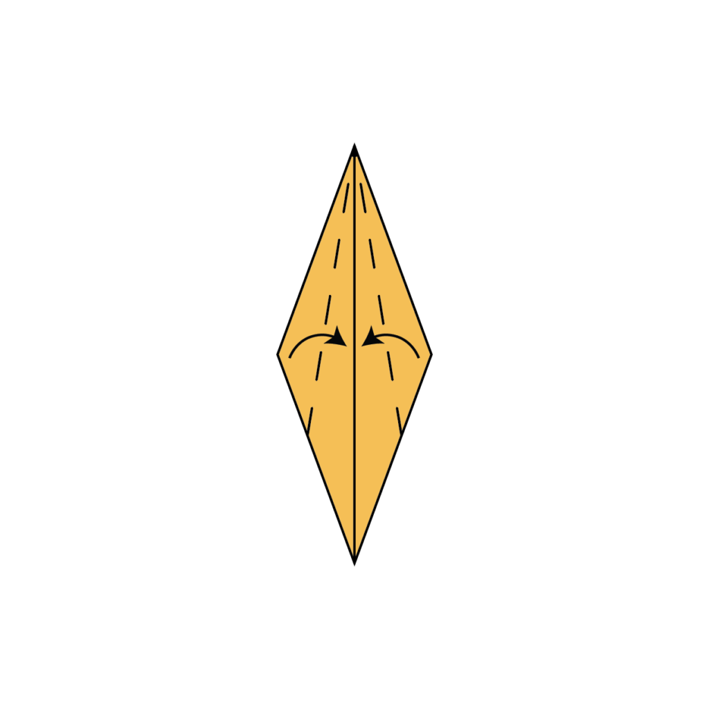 Fold both sides of the paper inward along the creases created earlier to complete a petal fold. Press the folds firmly to create sharp creases.